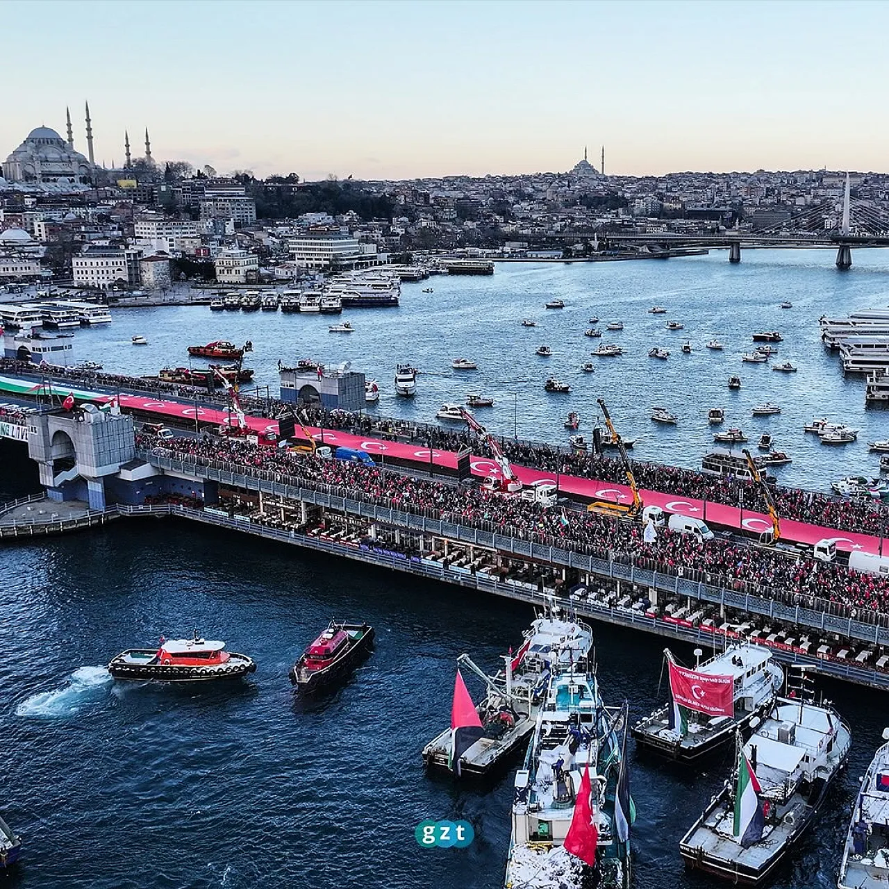 Yarım Milyondan Fazla Kişi Filistin'e Destek İçin Galata Köprüsü'nde