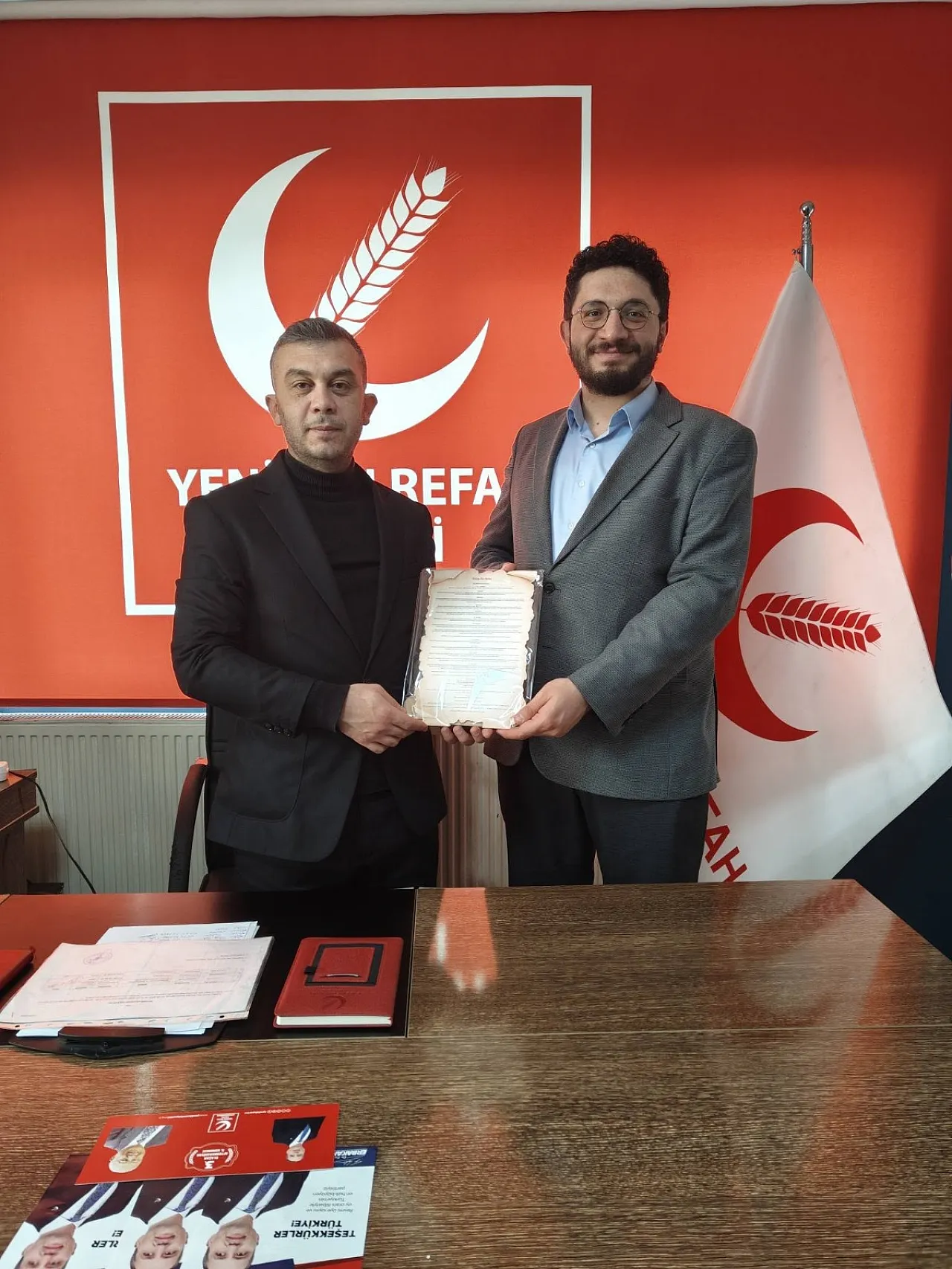 Yeniden Refah Partisi Afyonkarahisar İl Başkanı Fehmi Güray Çakır, Afyonkarahisar’da Milli Görüş’ü temsil eden iki sivil toplum kuruluşunu misafir etti. Başkan Çakır, “Anadolu Gençlik Derneği Şube Başkanımız Sayın Av. Mevlüt Yeşil ve Milli Gençlik Vakfı İl Temsilcimiz Sayın Muharrem Coşkun nazik ziyaretleriyle bizleri onurlandırdılar. Gençliğimizin milli ve manevi değerlerle yetişmesi, ahlaklı ve güçlü bir Türkiye idealinin en temel şartıdır. Bu doğrultuda yapılan her çalışma bizim için kıymetlidir. Nazik ziyaretleri ve samimi sohbetleri için kendilerine teşekkür ediyor, çalışmalarında başarılar diliyorum” dedi.