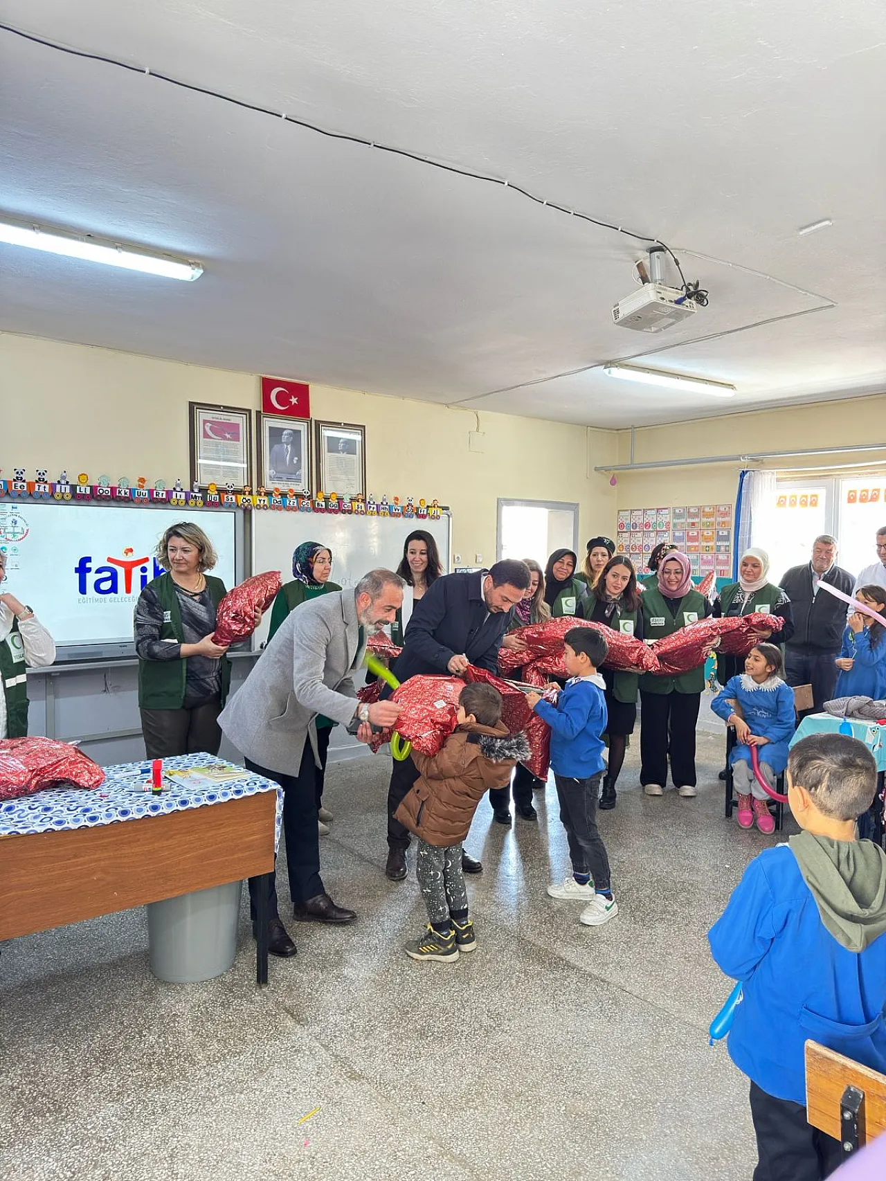 Etkinliğin sonunda öğrencilere günün anısına bir bot ve bir mont hediye edilerek çocukların mutluluğuna katkı sağlandı.