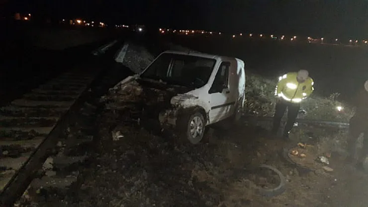Yük trenine çarpan hafif ticari aracın sürücüsü yaralandı