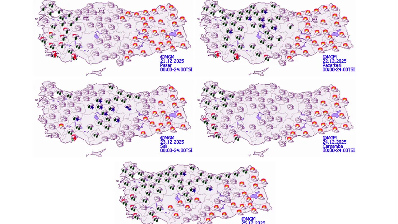 Yurt genelinin parçalı yer yer çok bulutlu, Marmara'nın doğusu, Batı Akdeniz, Tekirdağ, İzmir, Aydın, Muğla, Afyonkarahisar, Kütahya, Zonguldak, Bolu, Düzce, Erzincan, Tunceli çevreleri, Kırklareli'nin kıyı kesimleri, Ankara ve Eskişehir'in güneyi, Konya'nın kuzey ve batısı ile Erzurum'un batısının yağmur ve sağanak yağışlı, Güney Ege kıyıları ile Batı Akdeniz kıyılarının gök gürültülü sağanak yağışlı geçeceği tahmin ediliyor.